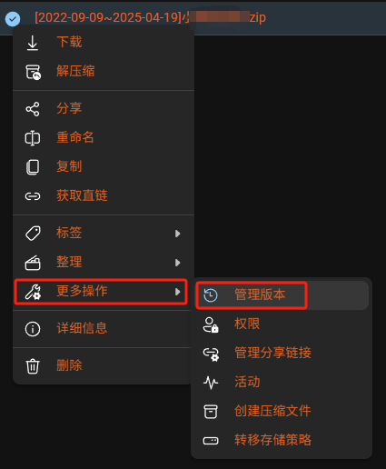 之后你将会看到如下弹窗,其显示了对应版本何时创建,对应版本所对应占用了多少空间,是谁触发创建了对应版本,其对应版本存储于哪一个存储空间当中。