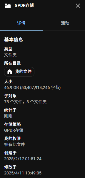 如果是文件在点击详细信息后会在主页面板右侧边显示如下文件基本信息内容: